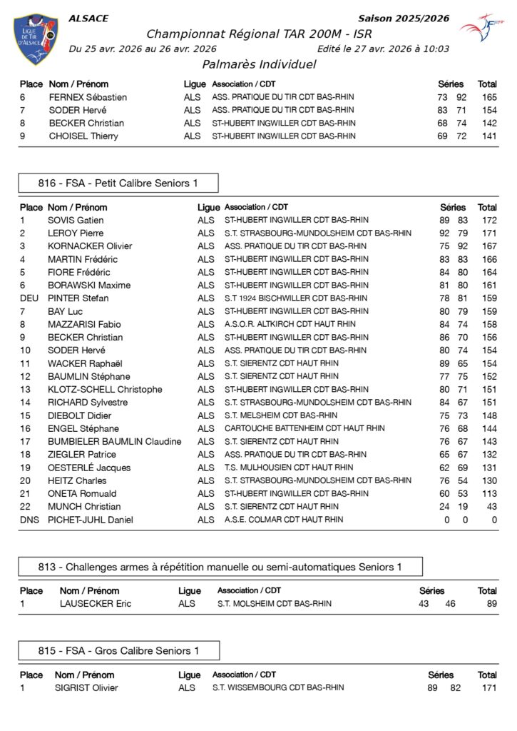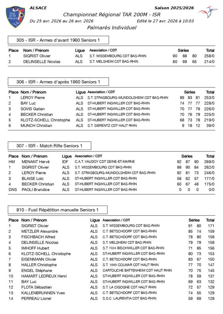 Avec plusieurs premières places et des scores solides dans différentes disciplines, Olivier réalise un excellent championnat, marqué par une grande régularité et beaucoup de maîtrise.