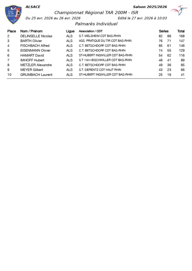 Le club félicite chaleureusement Olivier Sigrist pour ses très belles performances lors du Championnat Régional TAR 200m – ISR 2025/2026.